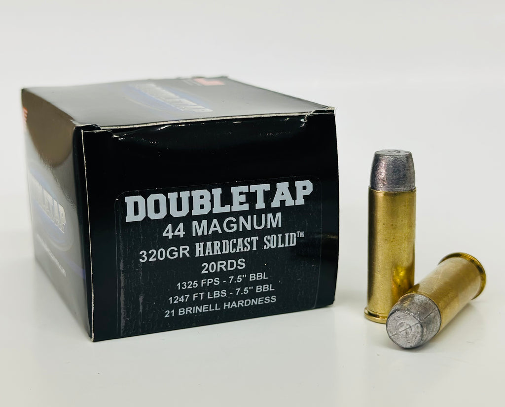 This load hits like a semi-truck! A 320gr wide flat nose LBT-style bullet at REAL .44 Magnum velocities. THE PERFECT cartridge for the serious hunter and for woods defense. You want penetration, you got it! This cartridge uses standard pressure. You can use it in any .44 Magnum that is in good condition! This powerful loading comes in boxes of 20!